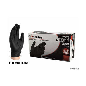 AMMEX GlovePlus Black Nitrile is a premium industrial grade nitrile glove; which is 50% thicker than standard nitrile gloves with three times the puncture resistance of latex or vinyl gloves.