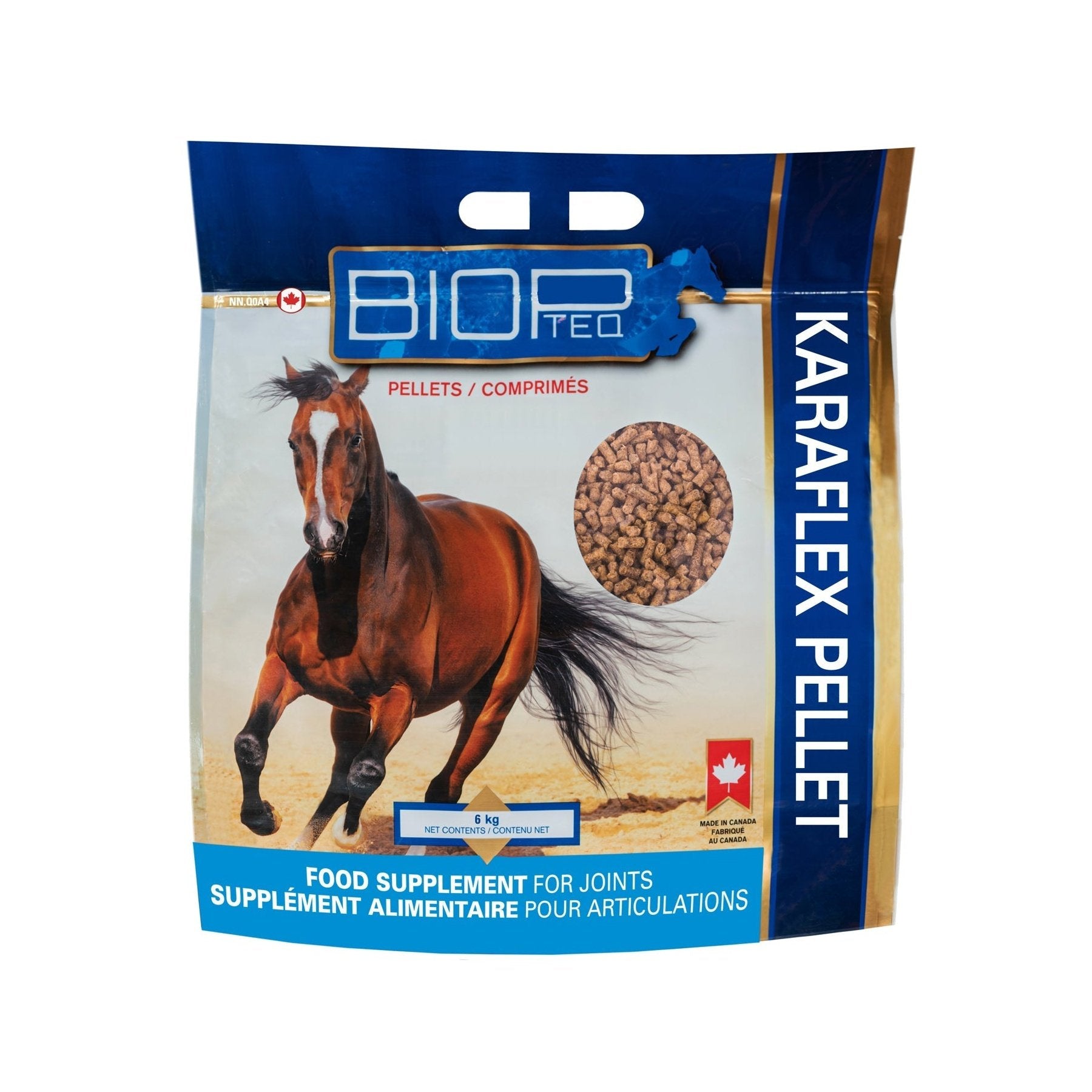 Administer 100 grams of Bioptec Karaflex per 500 kg of body weight, once a day. The 6 kg bag provides a 2 month supply.