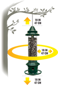 FOOD VENTILATION : The feeders’ clear silos trap the sun’s energy. While conventional feeders block the escape of hot air, our patented feed tube ventilation system draws moisture and hot air out of the holes in the top of the feeder and replaces it with fresh air. This keeps the food fresh, which attracts more birds.