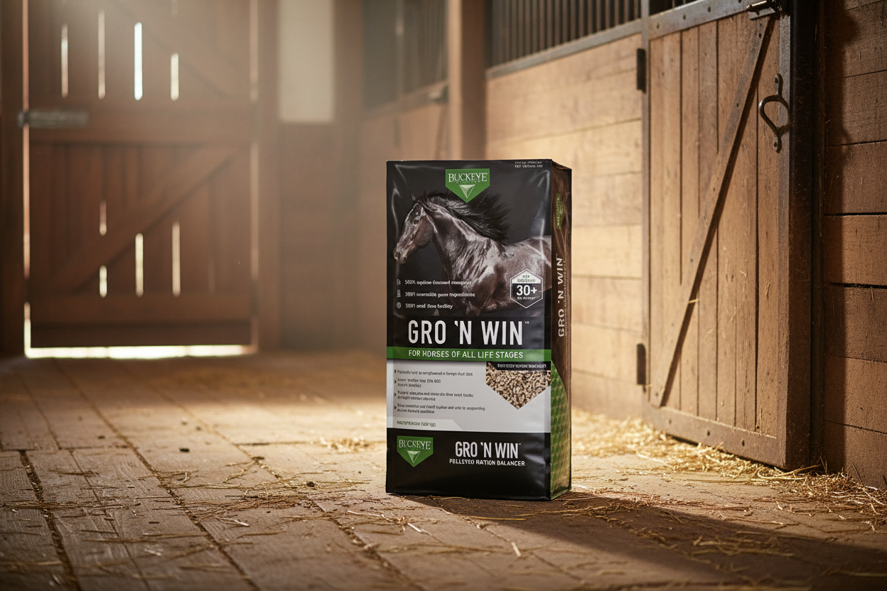 Invest in the Buckeye GRO 'N WIN™ Ration Balancer for a well-rounded, nutrient-dense addition to your horse's diet. Make the choice for comprehensive care and vitality.