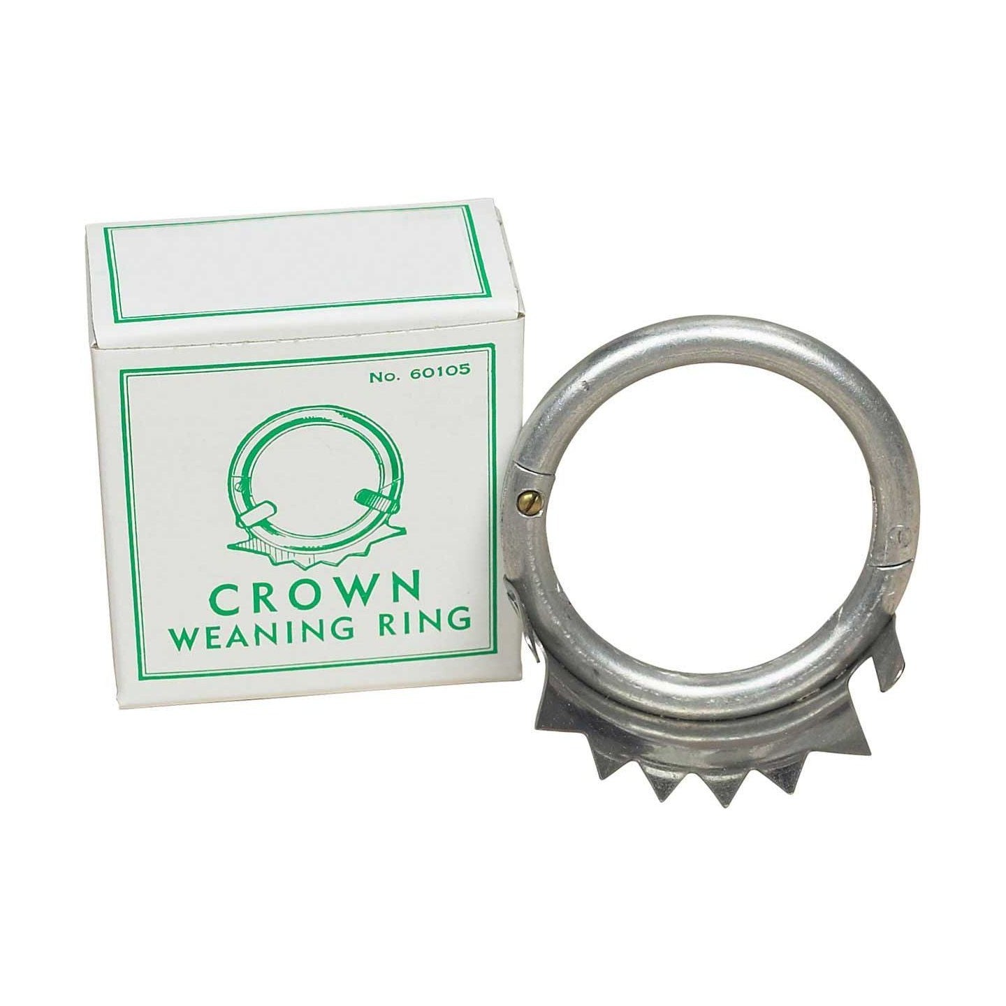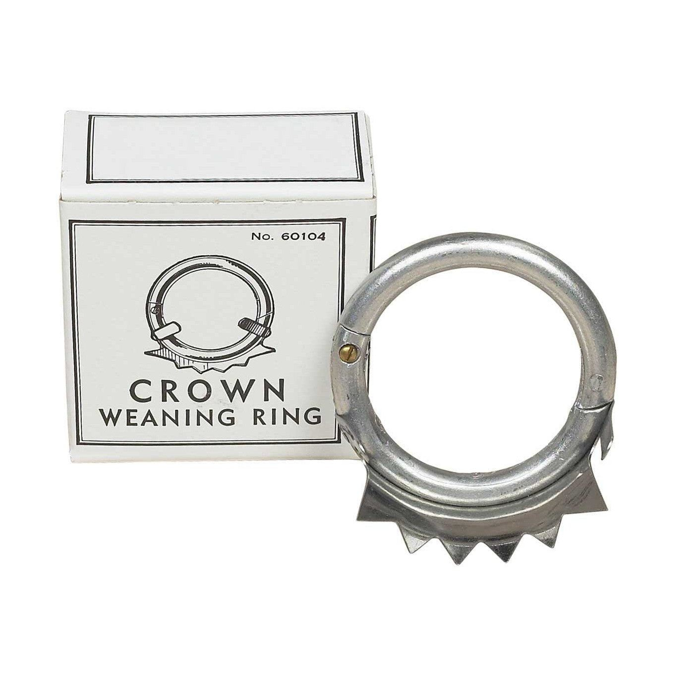 CROWN Style - This is a bull ring with an added metal serrated "crown" that causes discomfort in the udder when the animal tries to suckle. Aluminum ring with stainless steel plate.