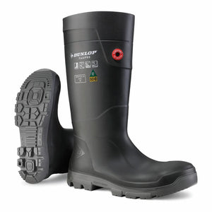 Dunlop waterproof, CSA SD certified work boot in Purofort (PU) with non-slip sole, protective toe cap and steel anti-perforation midsole.