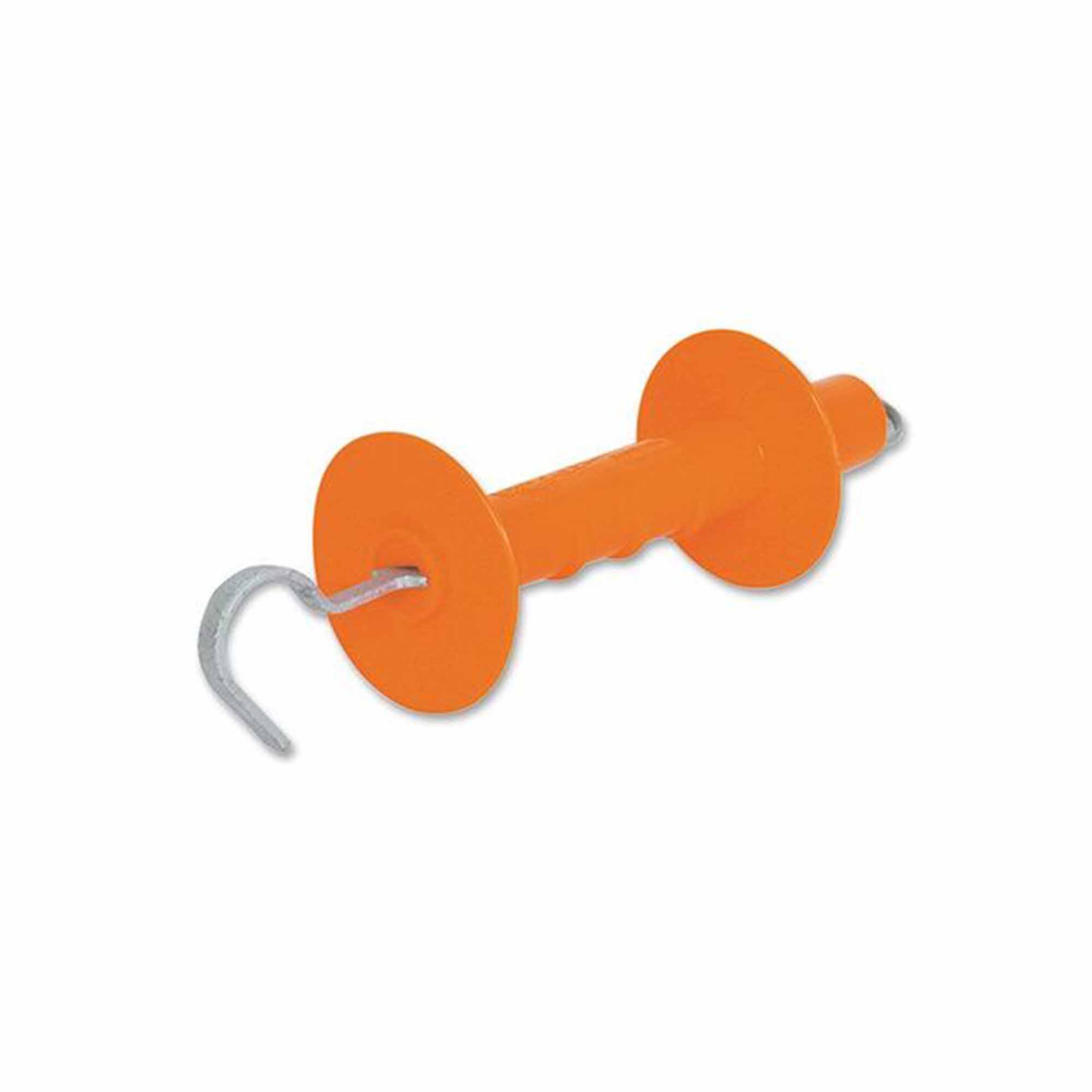 The heavy duty door handle is designed for safe and secure use of electrified gates. Its flat hook ensures maximum electrification, while the safety feature allows the handle to detach in the event of impact, reducing the risk of injury to animals and people.