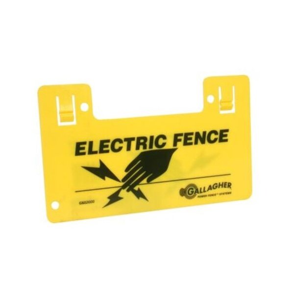 A highly visible yellow sign that warns that a fence is electrified. Easily clips onto fence wire and is required by law, must be used at least every 265 feet on boundaries and anywhere the public has access to a fence.