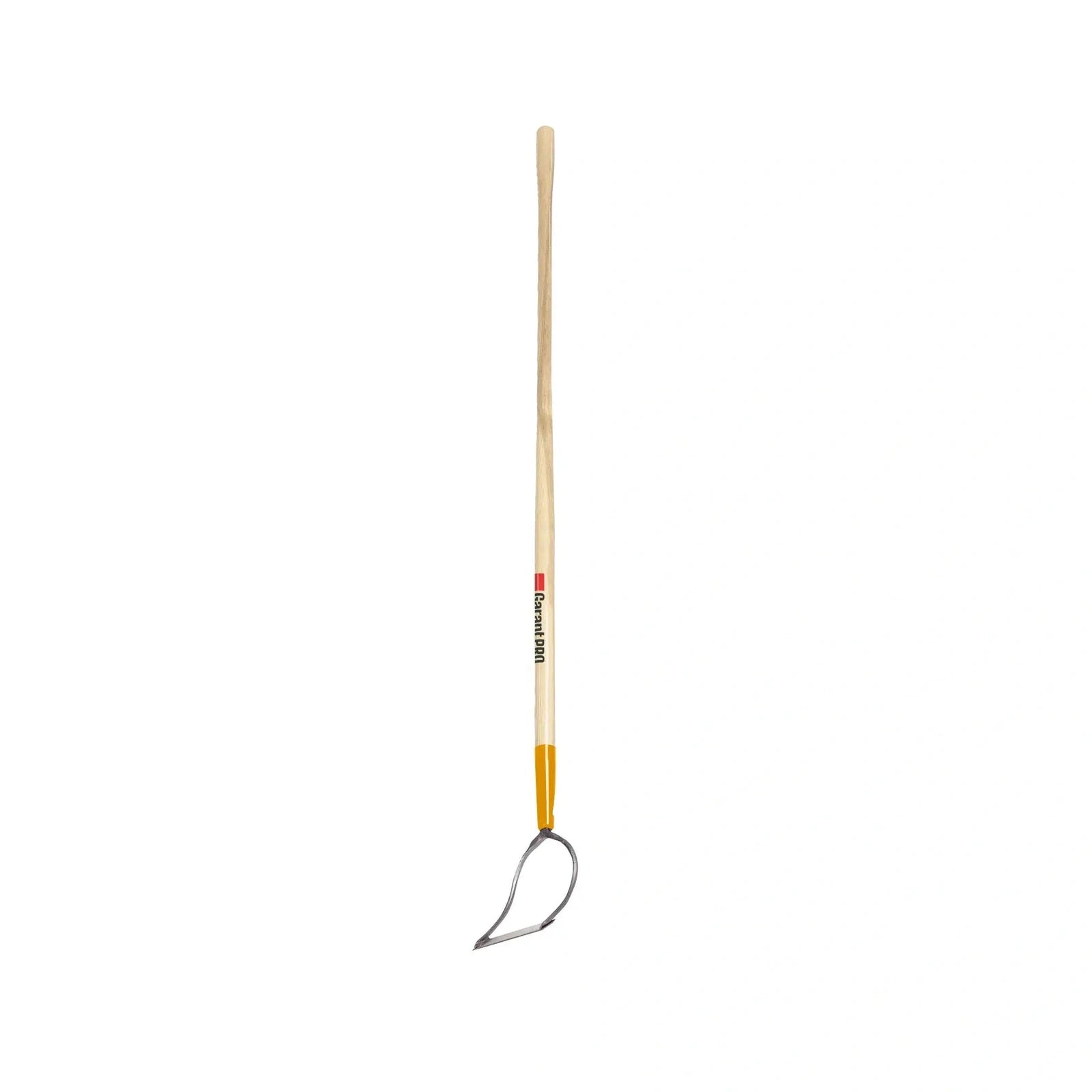 The Garant Pro Series industrial grade Dutch hoe is equipped with a shank-type 8" steel blade that is thin but ultra-sturdy to easily uproot weeds with a simple front-to-back movement.