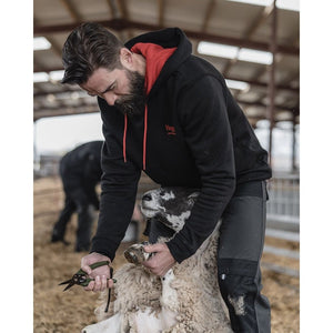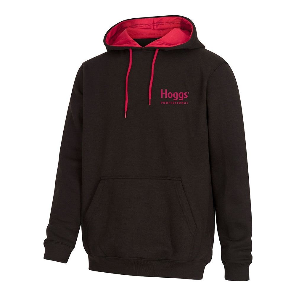 The classic 'Hoggs Professional' hoodie is made from a hardwearing cotton/polyester brushed fleece. This ensures comfort and practicality are maintained, whilst providing durability and insulation quality ideal for any working environment. Solid black, with beautifully designed red highlights and the classic Hoggs Professional logo.