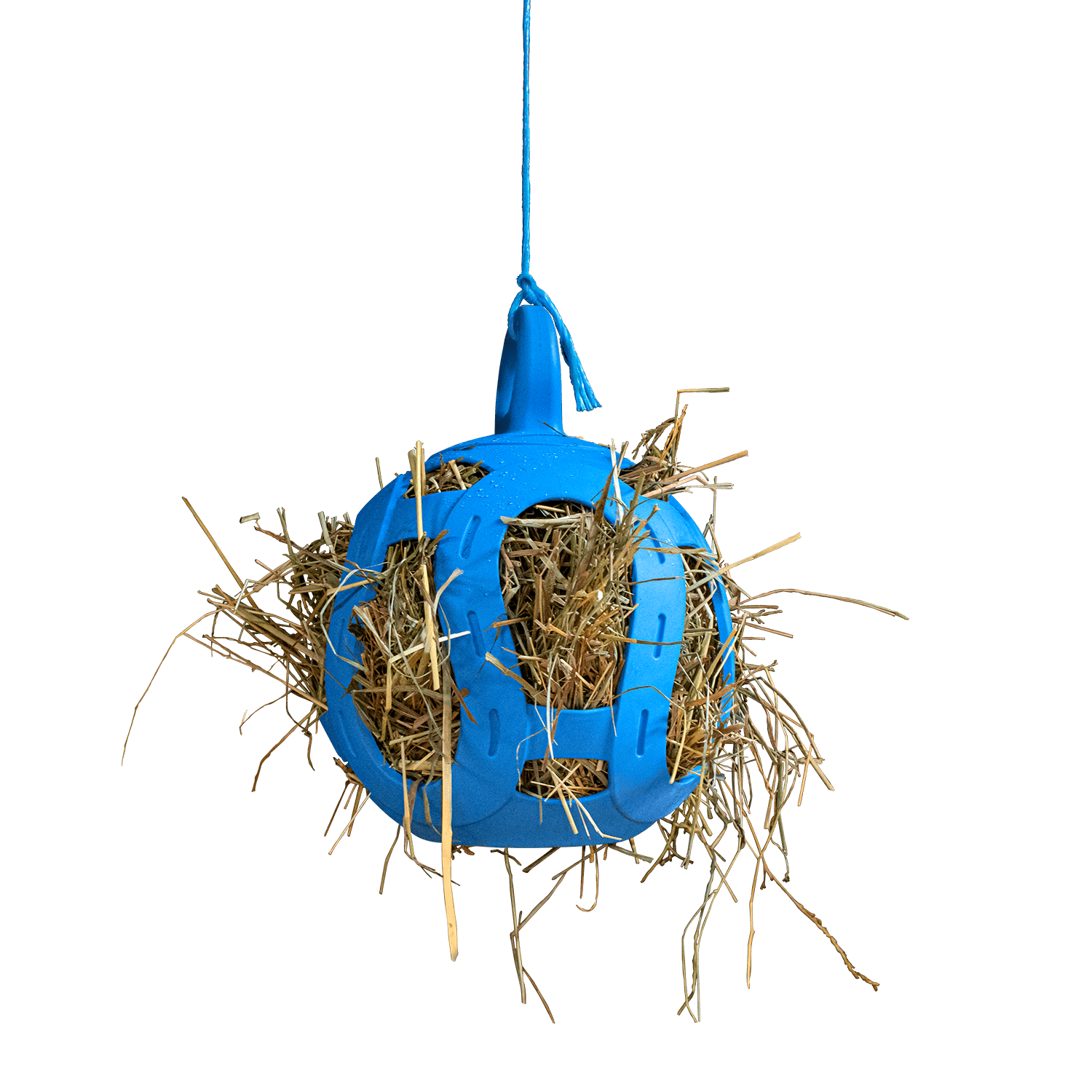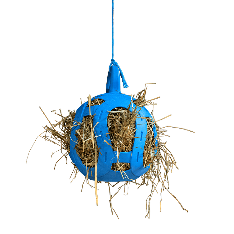 Suspended in the stall or paddock, the Jolly Hay Ball offers your horse or pony a little extra challenge to access treats. It can also be used for goats and other farm animals to provide mental stimulation and keep them occupied.