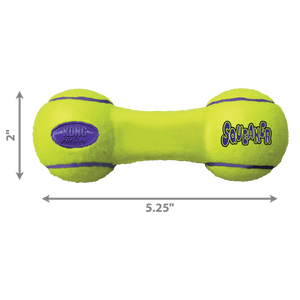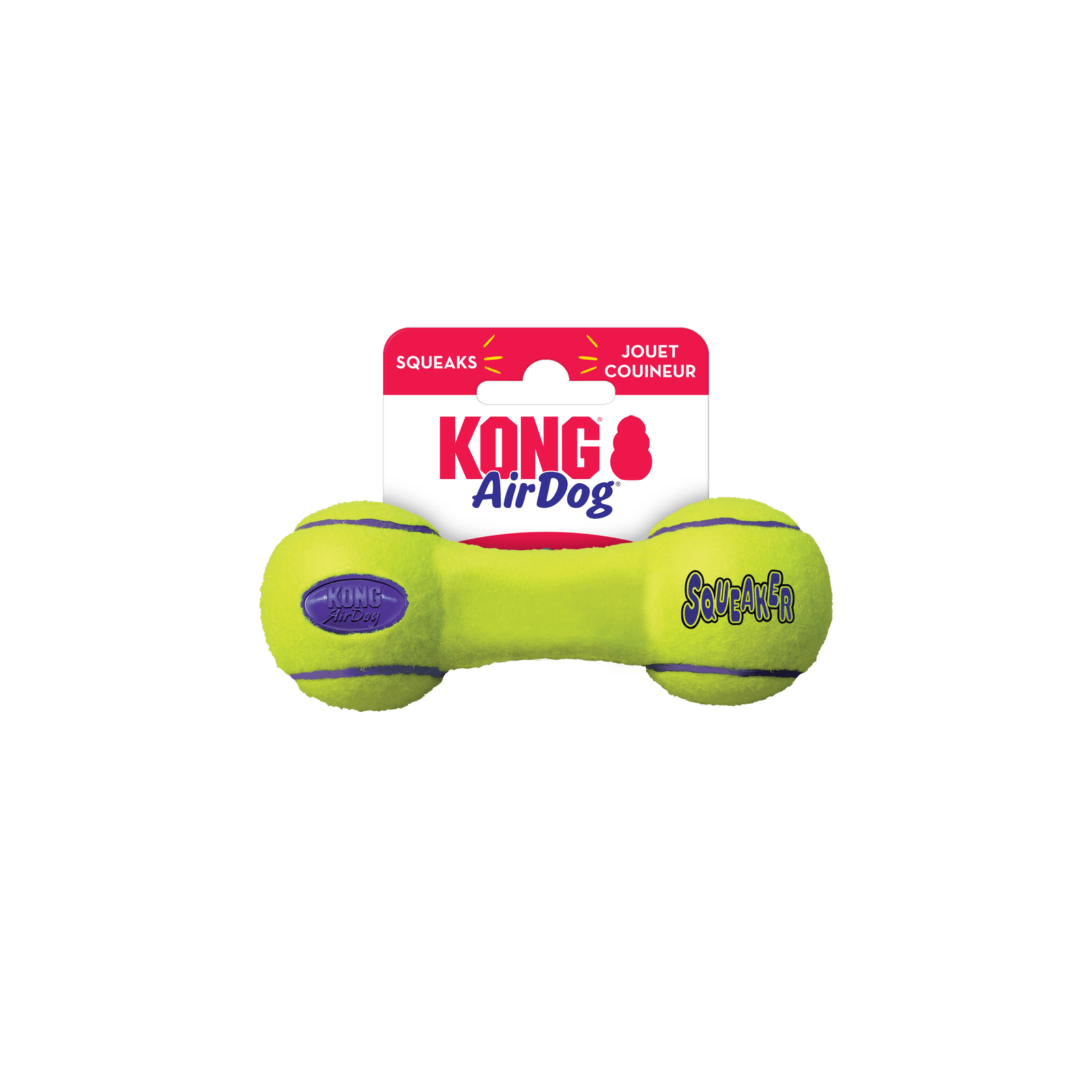 KONG AirDog® Squeaker Dumbbell combines two classic dog toys - the tennis ball and the squeaker - to create the perfect fetch toy. The high-quality, non-abrasive material won't harm dogs' teeth. Find your dog's favorite AirDog® shape and let the games begin!
