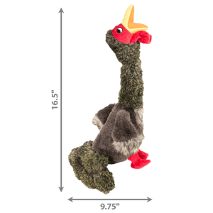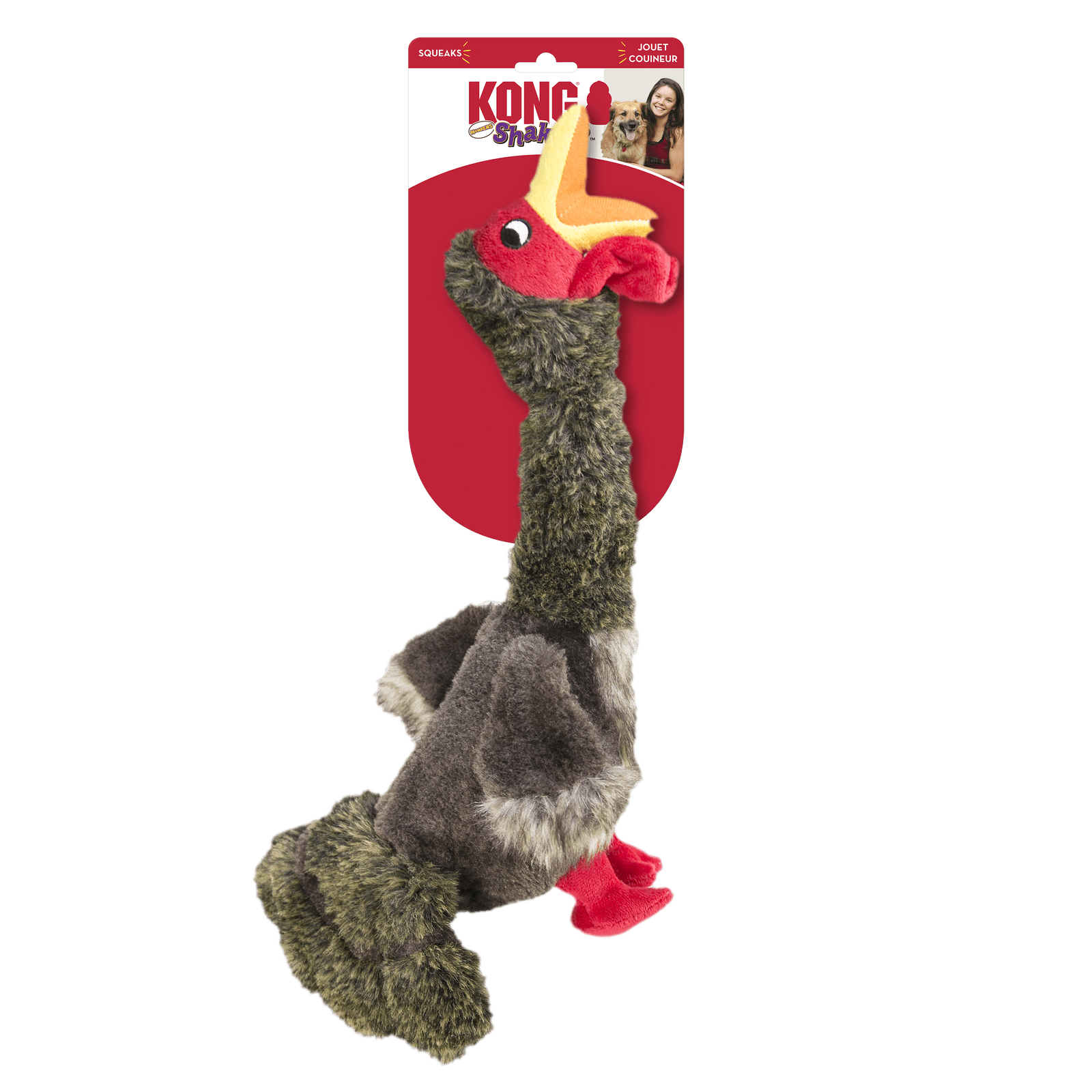 KONG Shakers Honkers Turkey is a fun gobbler with a textured inner neck that satisfies a dog's natural chewing instinct, while the long, flexible legs elicit playful shaking and tugging.