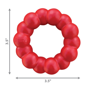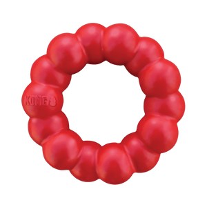 The KONG 100% natural red rubber ring is ultra-strong and its grooves provide your dog with a delicious chewing opportunity while maintaining healthy teeth and gums.