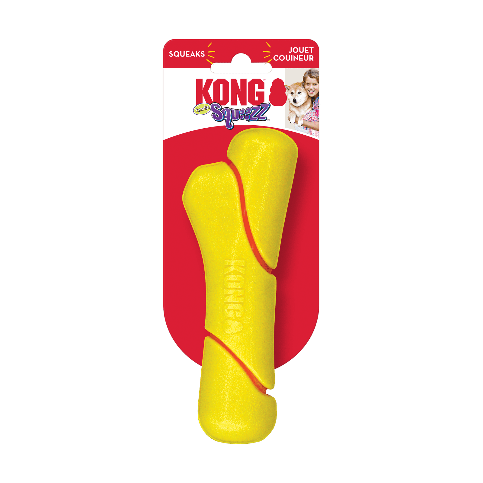The KONG Squeezz Tennis Stick delivers an unmatched squeak and features a thick coating that increases bounce height.