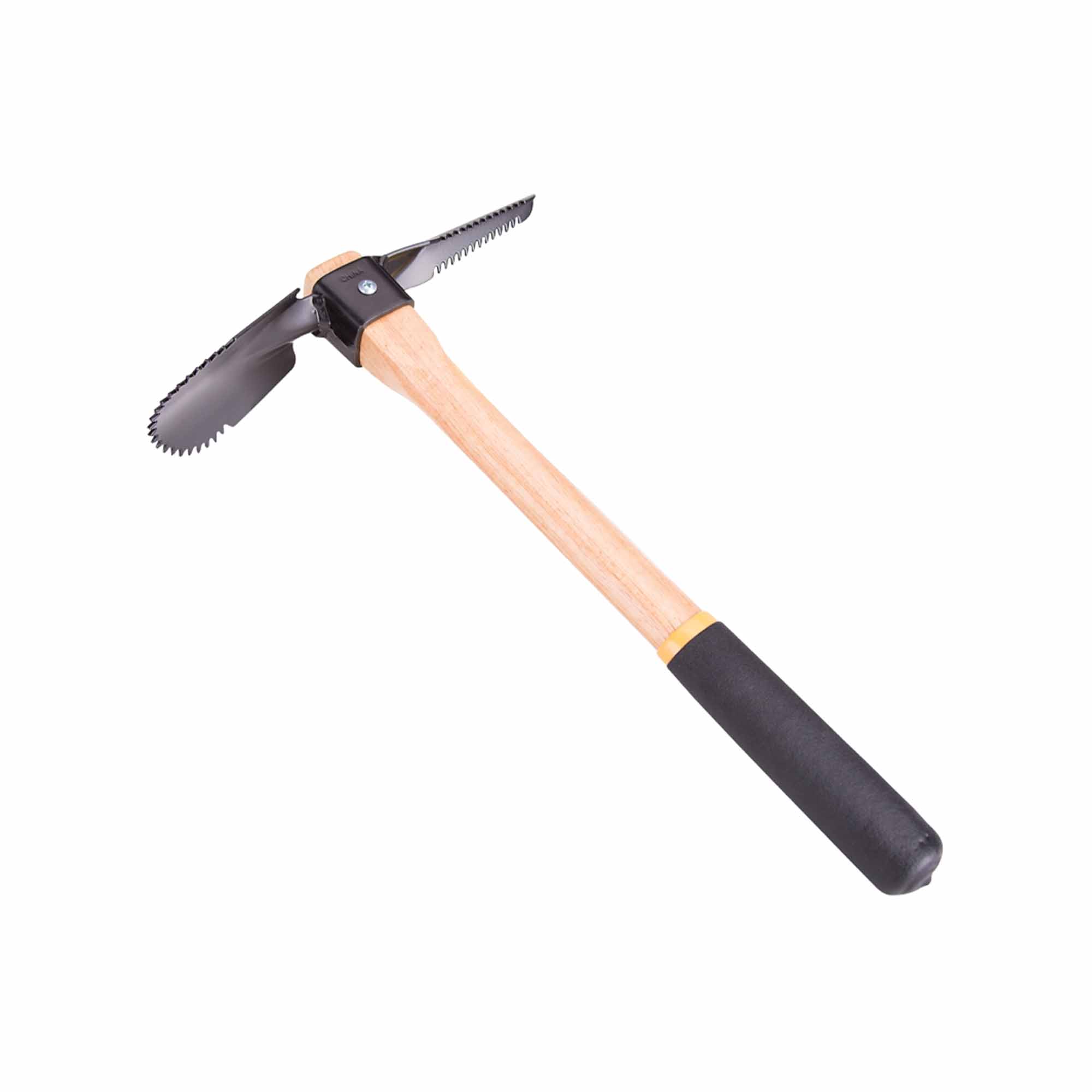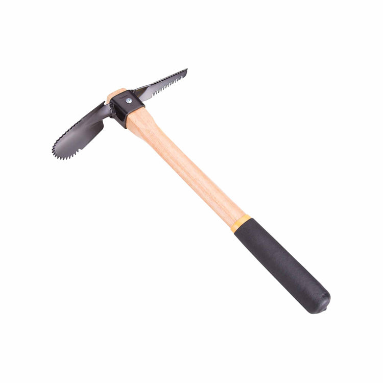 This hoe and pickaxe tool is ideal for close hoeing, weeding and opening small planting holes. The head is forged and tempered with a finely ground edge. It has an ergonomic hardwood handle with a padded grip.