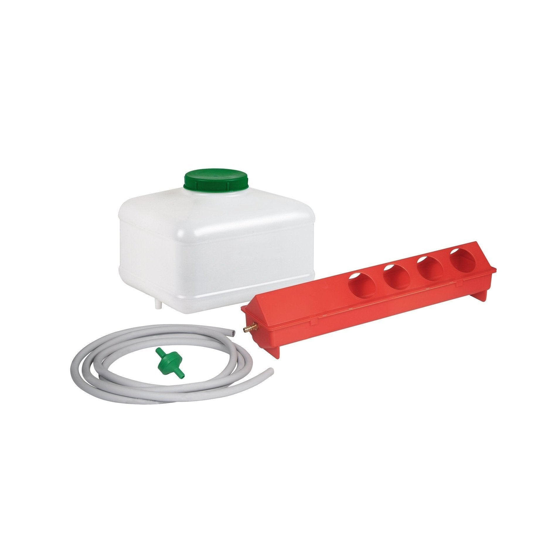 This Plastic Automatic Waterer Kit provides a continuous supply of fresh water through a gravity-fed system for adults, without requiring water pressure or the risk of freezing pipes.