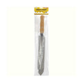 Its upward-angled tip won't snag frames while uncapping, and its grooved wooden handle provides a secure grip. Both edges of the knife are serrated for right- or left-handed use.