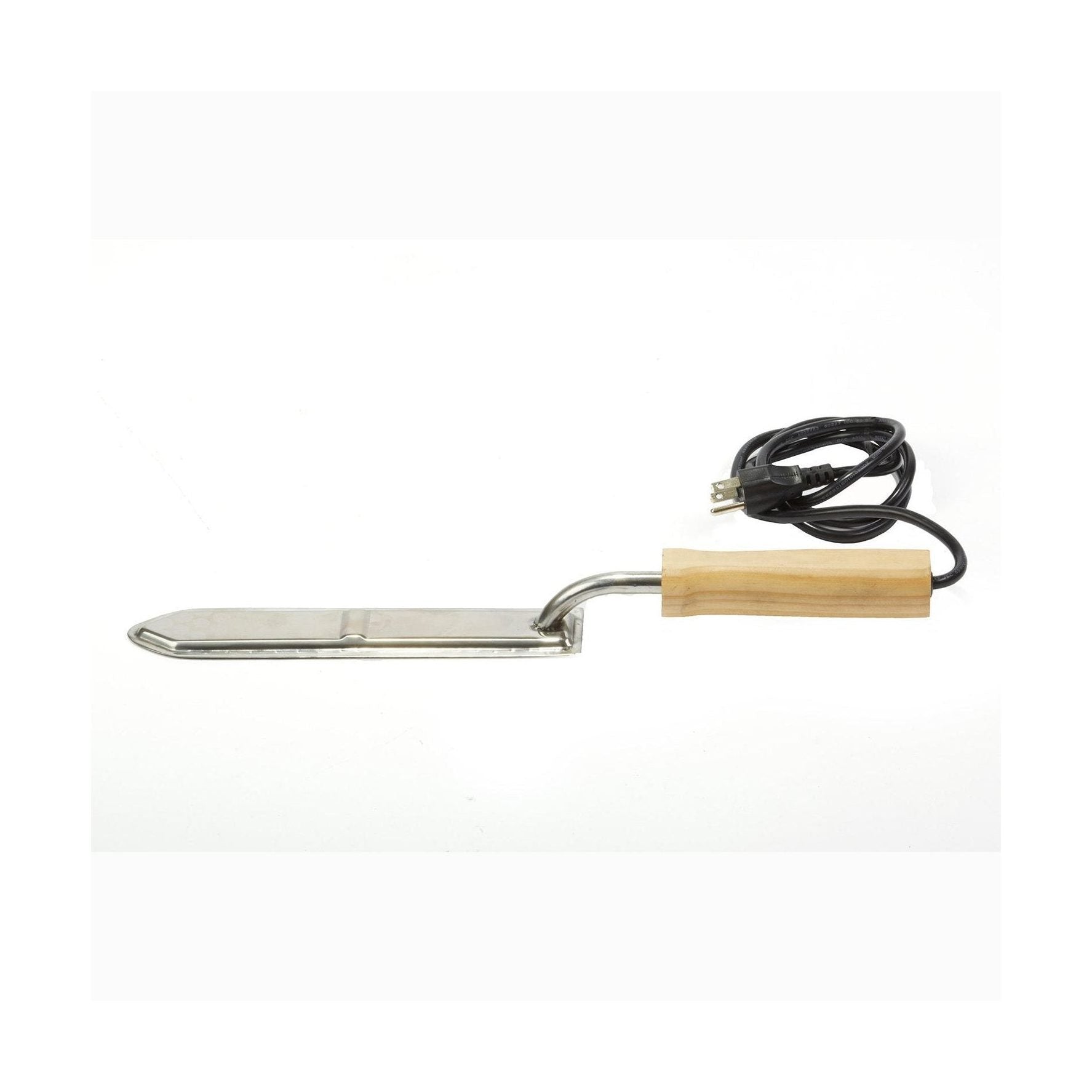 - The electric uncapping knife heats easily and quickly removes wax from capped honey frames.