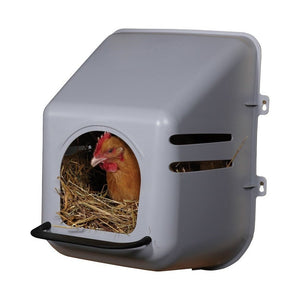The Little Giant nest box made of durable polyethylene offers spacious space, a convenient entrance perch and ventilation holes for better air circulation. Its sturdy, easy-to-clean design is perfect for your chickens. With its durable composition, it resists rust, rot and corrosion - better than metal nests and at a great price!