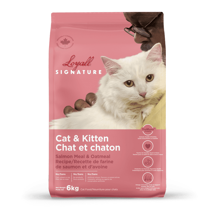 Watching your cat enjoy their meal warms your heart and reminds you of the deep bond you share. Because you care about your kitten and adult cat, you want to provide them with quality nutrition while satisfying their craving for salmon. Loyall® Signature Cat & Kitten – Salmon & Oatmeal Recipe is a unique formula that meets the needs of both kittens and adult cats in one product, without the hassle of transitioning.