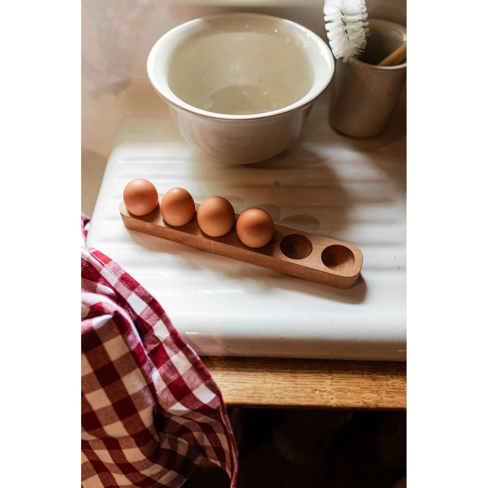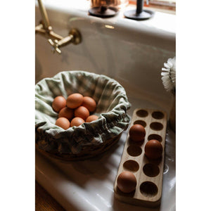 Handcrafted with care by an Amish craftsman in Lancaster County, Pennsylvania, this wooden egg holder is available in dozen and half-dozen sizes. Each holder is made of solid wood, perfect for organizing eggs. Dozen measures 12 x 4 x 1 inches, half-dozen measures 12 x 2 x 1 inches Solid poplar or ash wood Hand wash only Like all of our products, the wooden egg holder is proudly made in the USA.