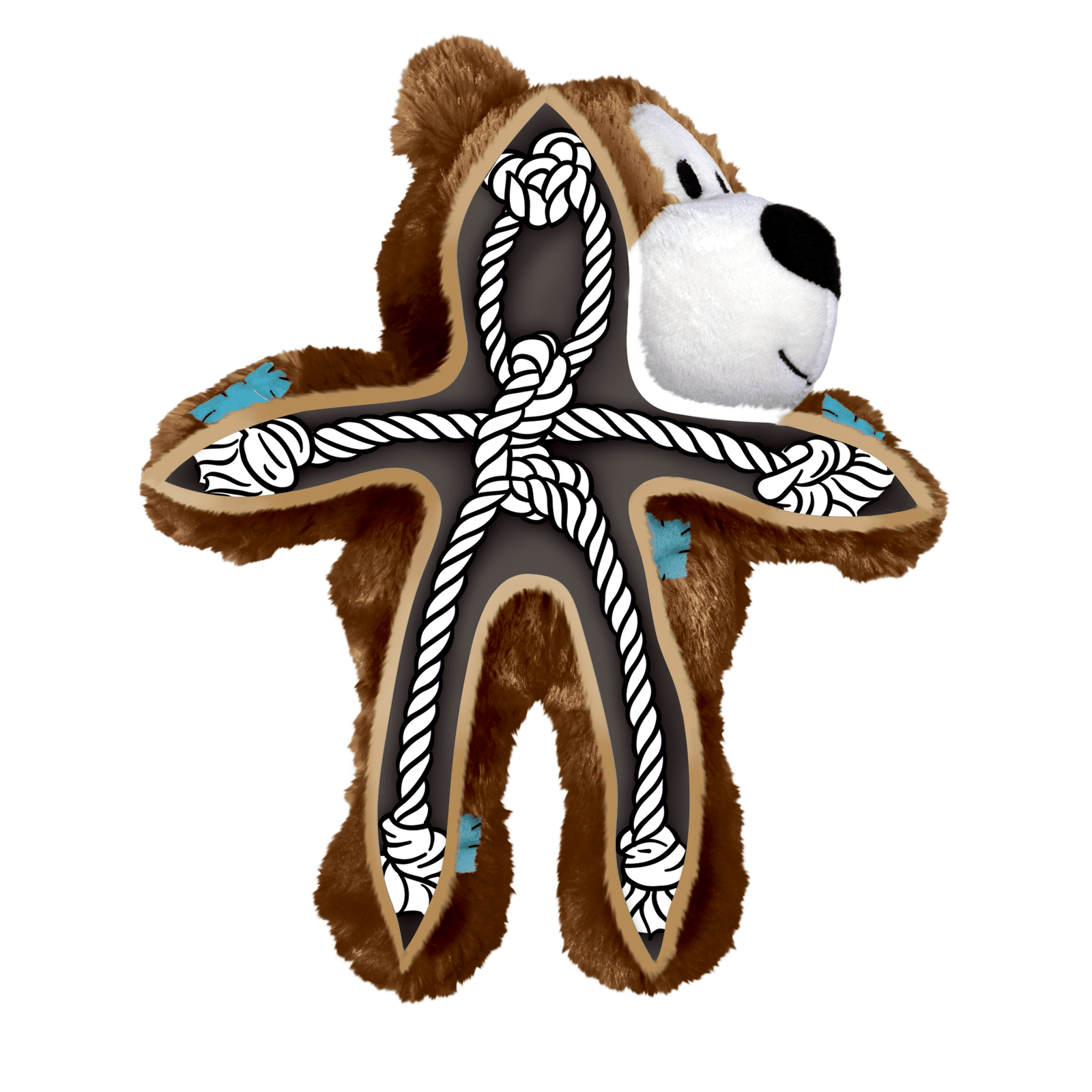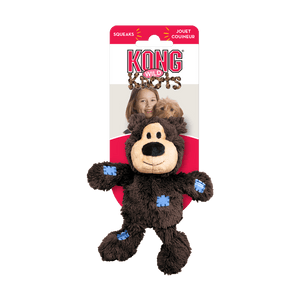 KONG Wild Knots are soft and cuddly on the outside while being durable and strong on the inside. Wild Knots are sure to be a hit with dogs and their pet owners. Dogs love the knotted skeleton and the reinforced plush body provides extra durability. KONG Wild Knots have less stuffing for less mess and they squeak to encourage play.