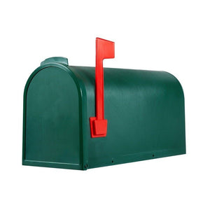 This plastic mailbox is perfect for rural areas. It's easy to install and weather-resistant. Its green color blends perfectly with the surrounding nature.