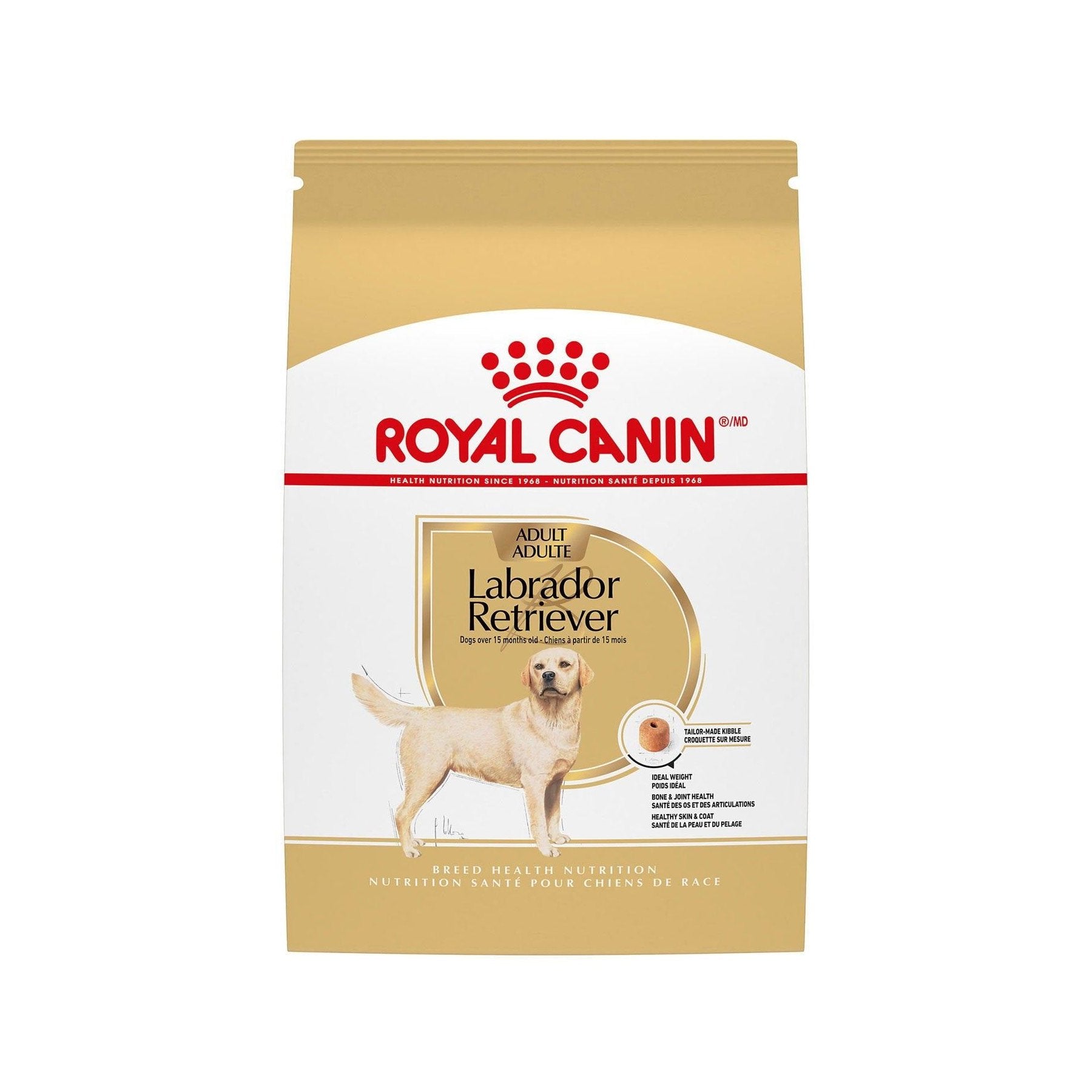 Give your Labrador Retriever the tailored nutrition they deserve with Royal Canin® Health Nutrition Labrador Retriever Adult dry dog food. Royal Canin makes it easier than ever to provide tailored nutrition for your dog. This Labrador Retriever formula features specialized doughnut-shaped kibble designed to help your fast-eating Labrador Retriever slow down and chew. Plus, this complete and balanced adult dog food provides the nutrition needed to help your best friend reach their full potential. Precise calorie and fat intake helps keep your Labrador Retriever at a healthy weight, while nutrients like EPA, DHA, and glucosamine contribute to bone and joint health. This food formulated for Labradors contains exclusive nutrients that strengthen the skin barrier to maintain skin health and a beautiful coat. Serve your Labrador Retriever Royal Canin Health Nutrition Labrador Retriever Adult dog food and support their overall well-being with every meal.