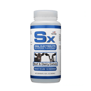 Sx Oral Nutritional and Electrolyte Supplement is a fast-acting oral nutritional and electrolyte supplement for beef and dairy calves.