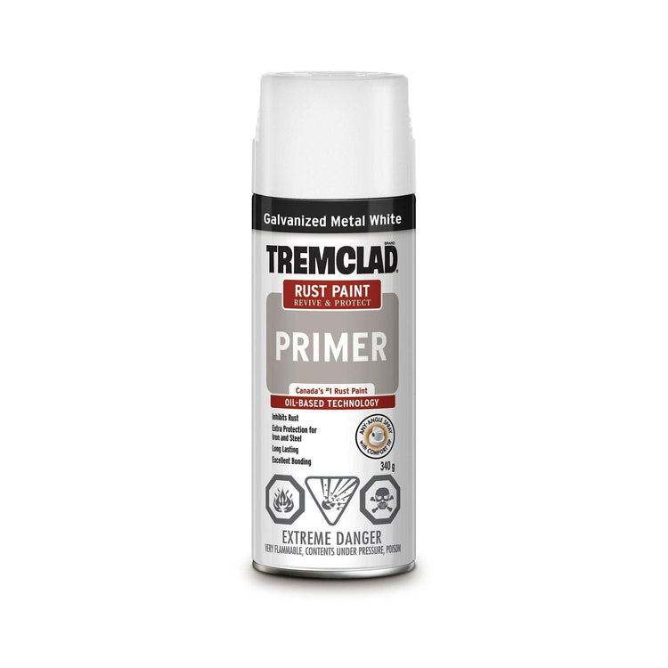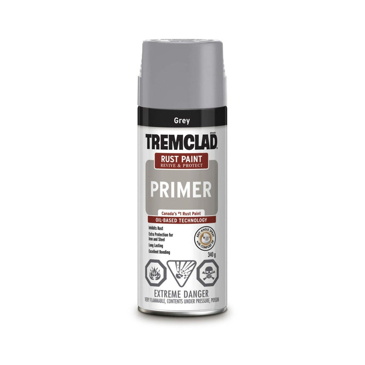 Apprêt antirouille en aérosol Tremclad doté d'une formule antirouille qui offre une protection supplémentaire pour les surfaces sablées ou fortement abîmées.