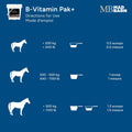Nous vous mettons au défi de comparer B-Vitamin Pak – vous ne trouverez pas sur le marché un supplément de vitamine B équine moins cher et de meilleure qualité !