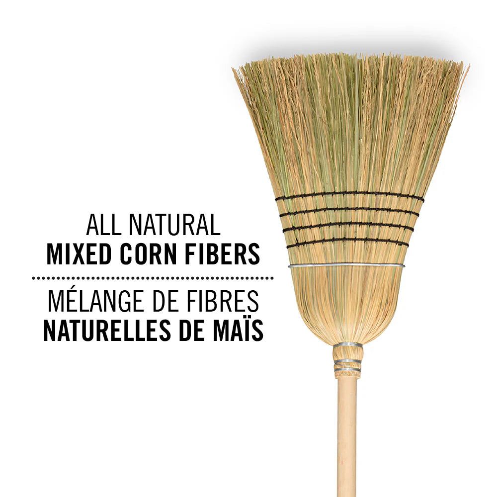 Balai de paille pour entrepôt, usage intensif, fibres naturelles, intérieur et extérieur, construction robuste avec un fil de métal et 4 coutures, manche en bois dur 1-1/8" x 39", idéal pour les bureaux, entrepôts, garages, entrées et patios