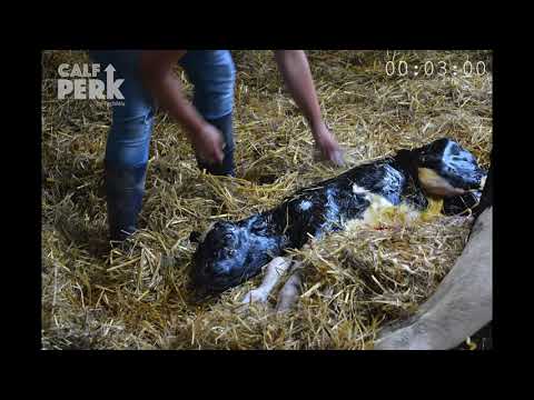 - Immédiatement à la naissance : Administrer Calf Perk (tube oral de 15 ml) pour l'énergie et la chaleur