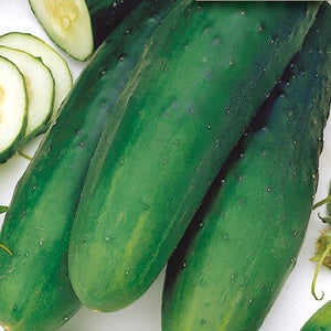 A favorite variety with attractive green skin and crisp, juicy white flesh. Small seeds in very uniform 20 cm (8") fruit. White spined. Plant Type: Vegetable