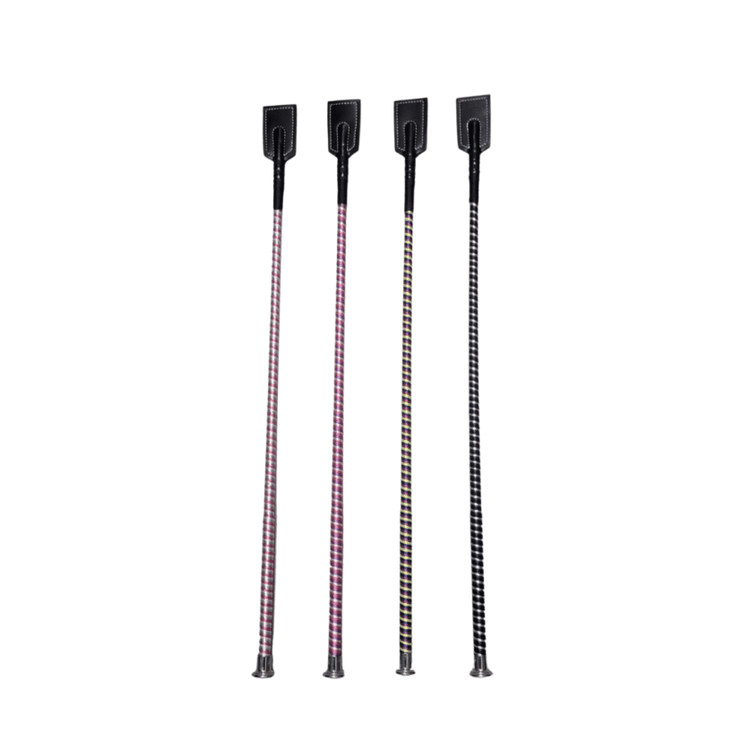 Cravache en nylon tissé à la main avec bouton-pression en cuir renforcé et embout argenté Disponible en quatre options de couleurs