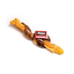 Le filet de bœuf Hero's avec gosier est comme un produit à mâcher gourmet pour chien. Un morceau épais de tendon entièrement naturel enveloppé dans un gosier, fabriqué à partir de bovins brésiliens nourris à l'herbe sans additifs, hormones ou conservateurs. Les longueurs et la largeur des bâtonnets varient car il s'agit d'un produit à mâcher naturel.