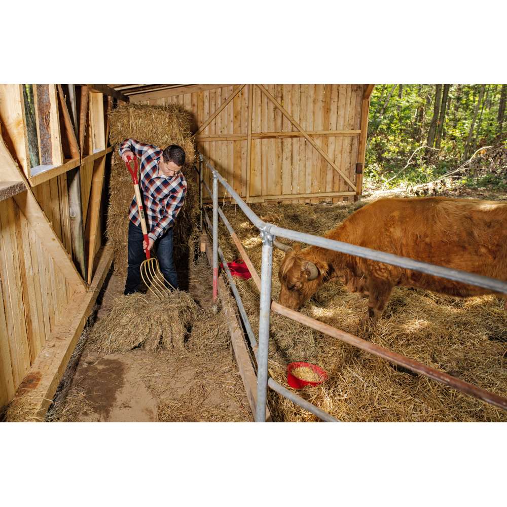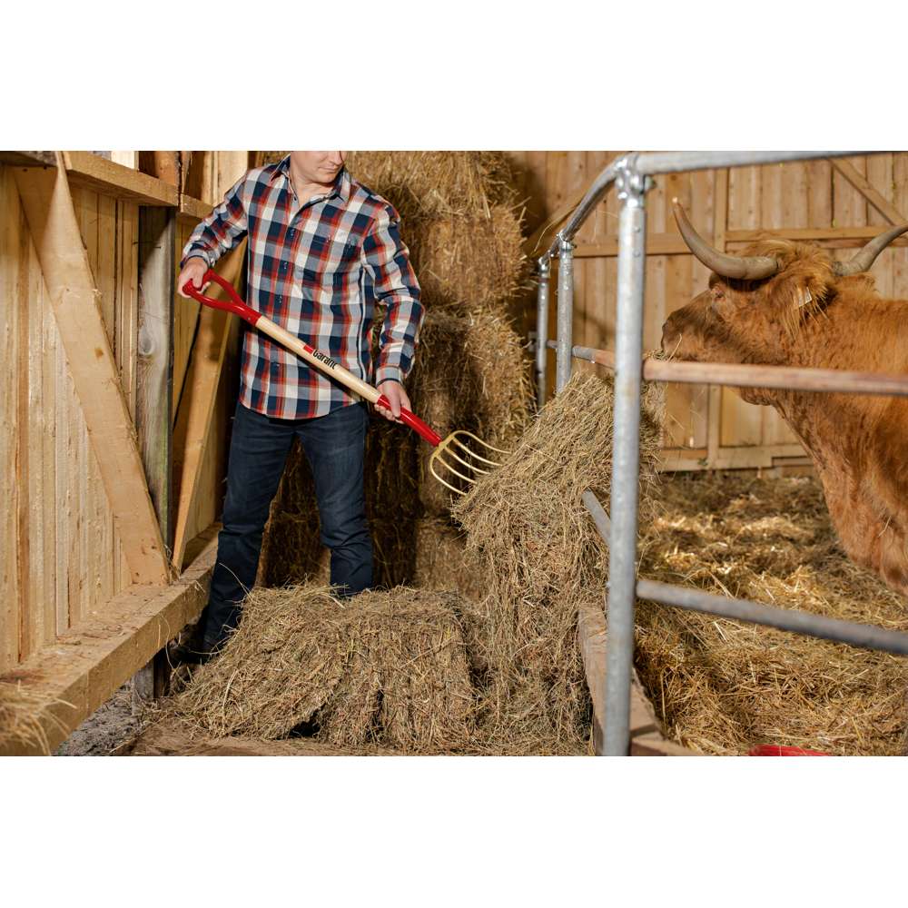 Ses 5 dents de 13 po (33 cm) sont étroites et pointues pour une meilleure manipulation de l'engrais. Cette fourche à engrais a spécialement été conçue pour les agriculteurs qui désirent un outil robuste, efficace et confortable.