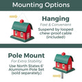 Cette mangeoire polyvalente peut être suspendue ou fixée sur un poteau et bénéficie d'une garantie de trois ans. Fabriquée en plastique moulé résistant, son charme rustique saura séduire les oiseaux.