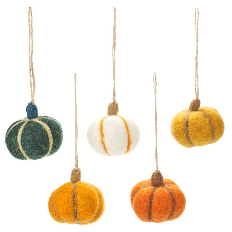Citrouilles d'Halloween suspendues en feutre faites à la main (lot de 5)