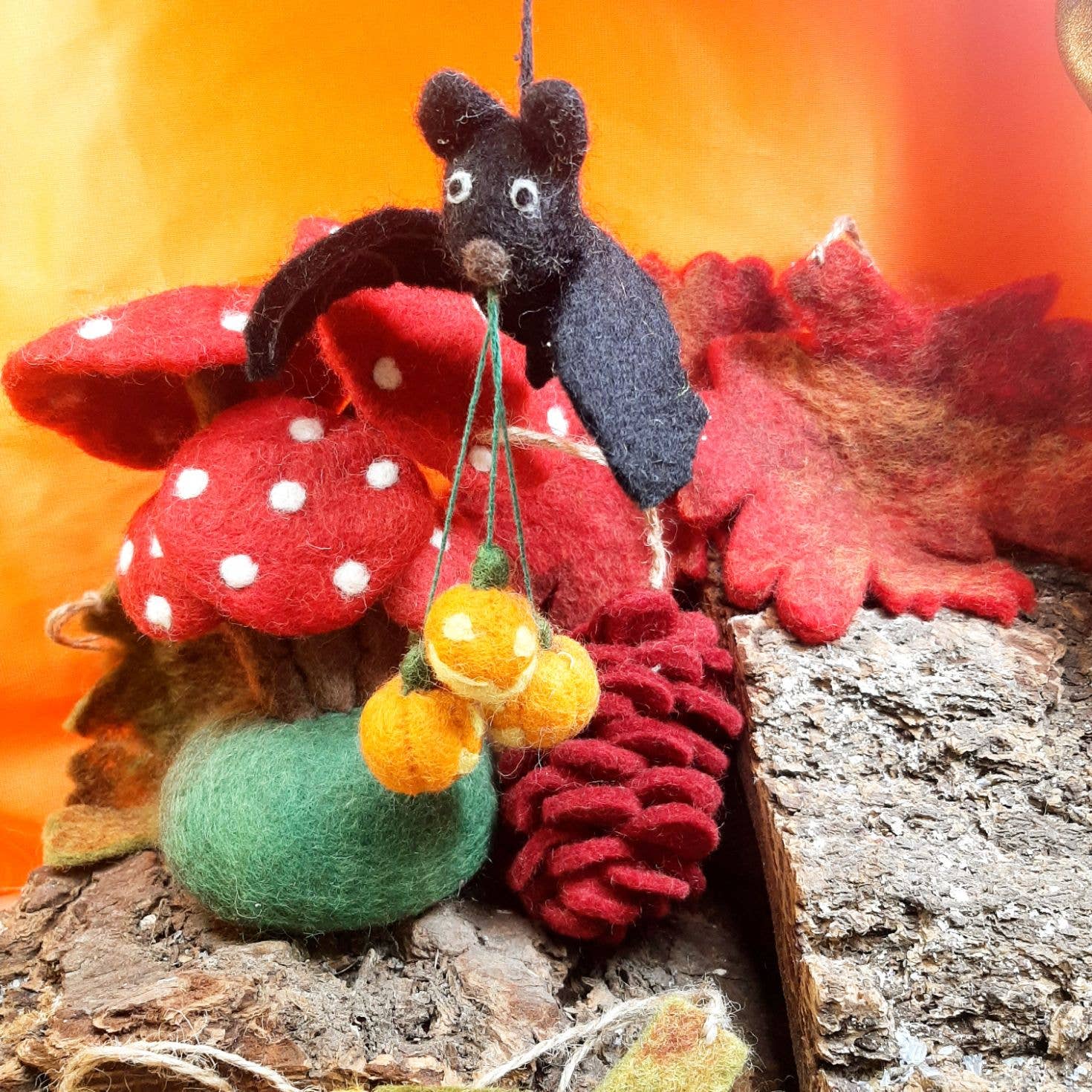 Chauve-souris en feutre faite à la main, décoration d'Halloween à suspendre
