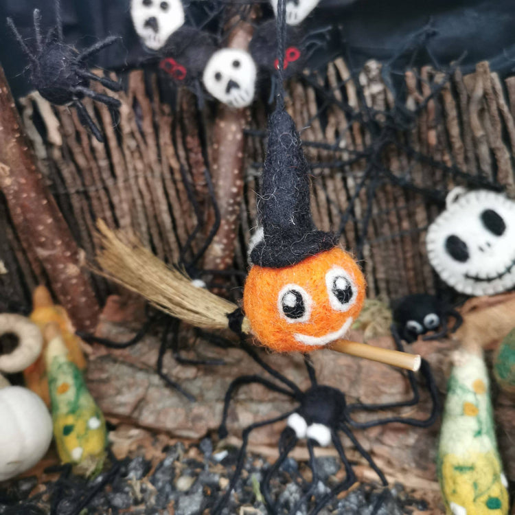 Citrouille volante en feutre à suspendre faite à la main biodégradable pour Halloween