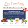 Aide à détendre votre chien grâce à des herbes ayurvédiques naturelles et des champignons médicinaux. *Sans CBD.