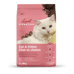Regarder votre chat savourer son repas vous réchauffe le cœur et vous rappelle le lien profond qui vous unit. Parce que vous vous souciez de votre chaton et de votre chat adulte, vous voulez leur fournir une alimentation de qualité, tout en satisfaisant leur envie de saumon. Loyall® Signature Chat & Chaton – Recette de farine de saumon et d’avoine est une formule unique qui répond aux besoins des chatons et des chats adultes en un seul produit, sans avoir à se soucier de la transition de l’alimentation.