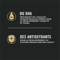 - Saumon comme premier ingrédient, source d'oméga-3 pour la peau et le pelage