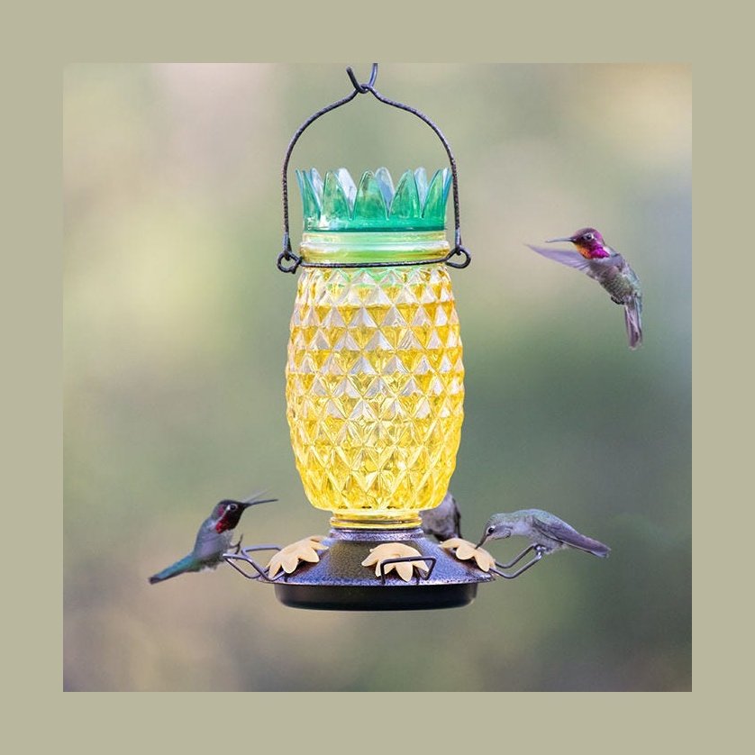 Découvrez le Perky-Pet® Pineapple Top-Fill Hummingbird Feeder! Inspiré par la relation entre les colibris et les ananas sauvages, ce mangeoire combine style et fonctionnalité. Avec son design accueillant et sa technologie de remplissage par le haut, il attire les colibris tout en facilitant votre vie. Les ports d'alimentation réalistes et la protection contre les abeilles et les fuites en font un choix parfait pour les amoureux des oiseaux soucieux de la nature. Offrez à vos visiteurs ailés une expérience de repas exceptionnelle avec ce mangeoire unique en son genre!