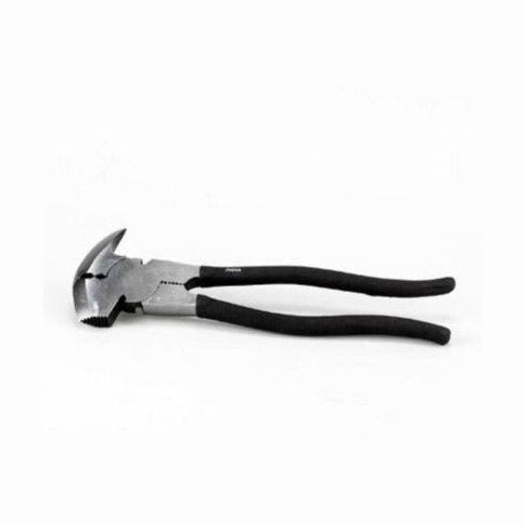 Outil polyvalent pour clôture, fonctionnant comme un marteau, des pinces, des coupeurs et un arrache-clou, le tout en un. Le gainage du manche associé à un grand confort d'utilisation