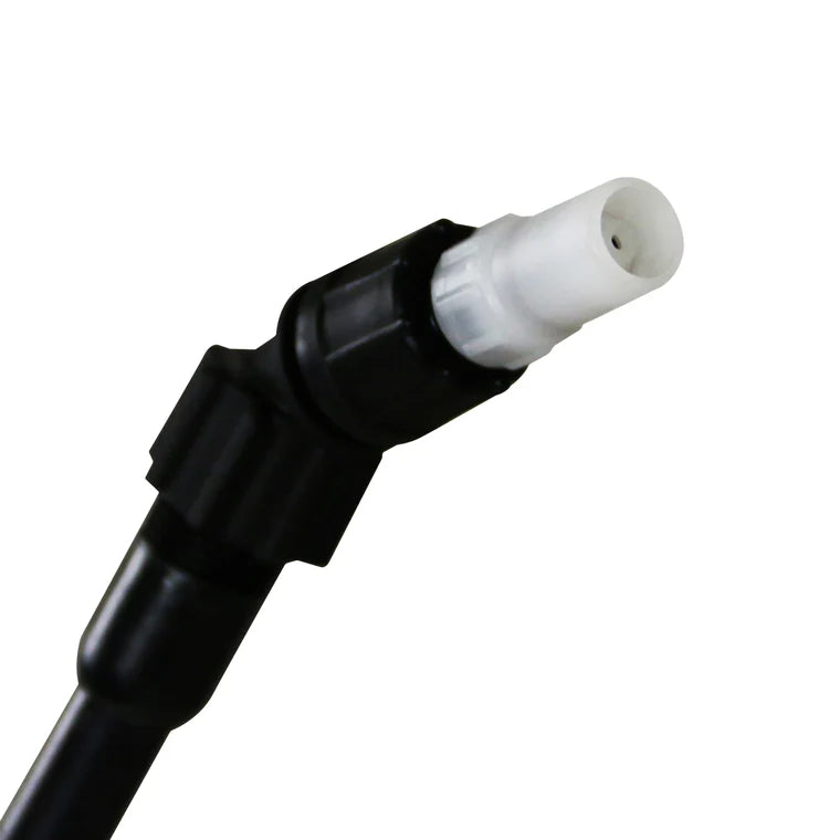 Composants : buse à cône en poly réglable, fonctions de pulvérisation à rampe et ponctuelle, lance en poly de 20 pouces et tuyau renforcé de 15 pieds