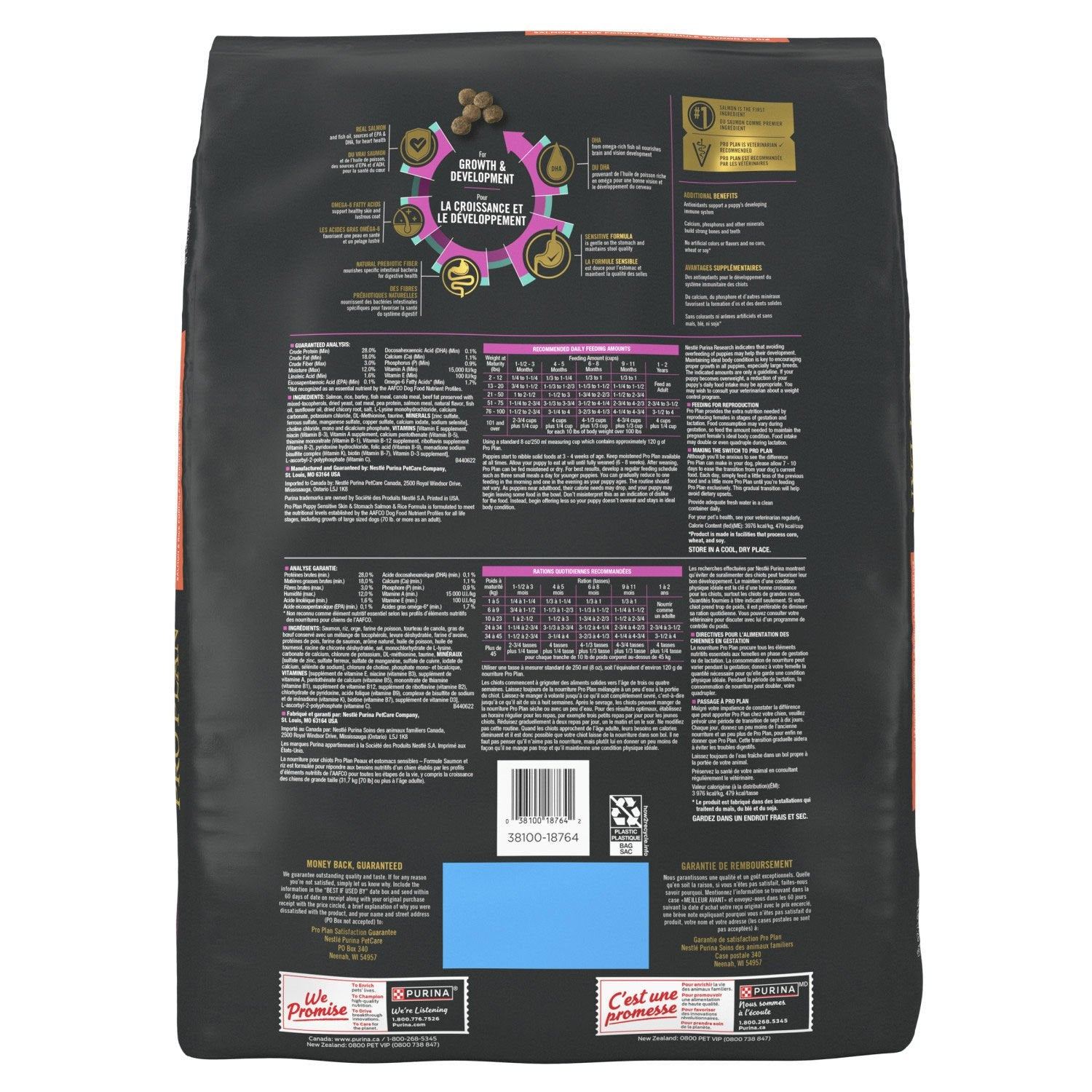 Purina Pro Plan® Chiot Peau et Estomac Sensibles Formule Saumon et Riz Nourriture Sèche pour Chiens