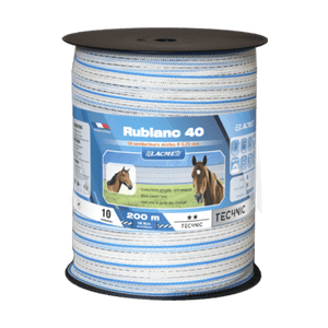 Ce ruban de clôture électrique Blanc et Bleu, Rublanc - LACMÉ est idéal pour garder vos animaux en sécurité et préserver votre clôture. Avec sa couleur contrastée, il offre une haute visibilité pour éviter les accidents.