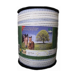 Ce ruban électroplastique blanc pour cloture electrique, Polytape (200m), est idéal pour l'élevage.
