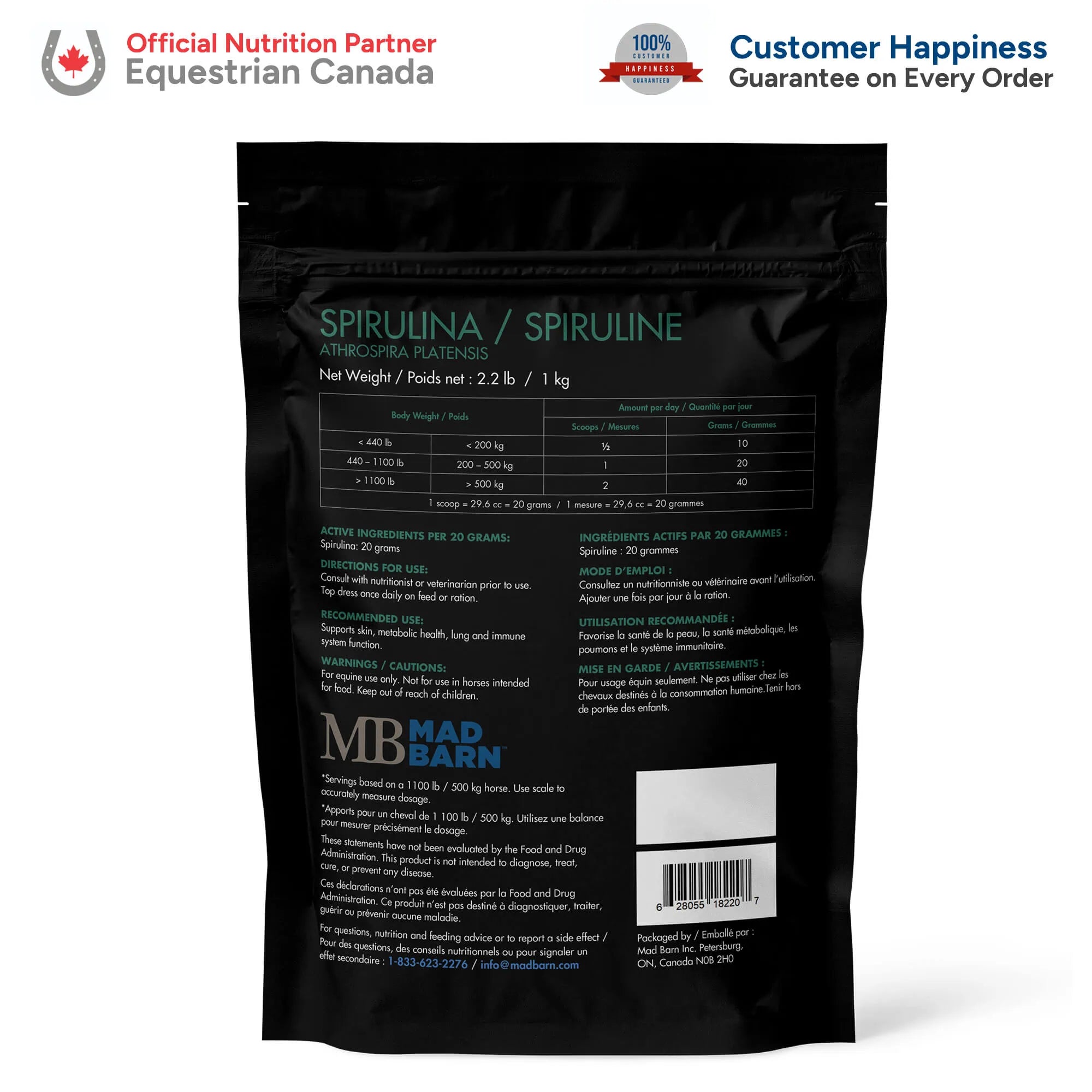 La poudre de spiruline en vrac de Mad Barn fournit une forme concentrée d’algues bleues pour soutenir la fonction immunitaire et les besoins nutritionnels de votre cheval.