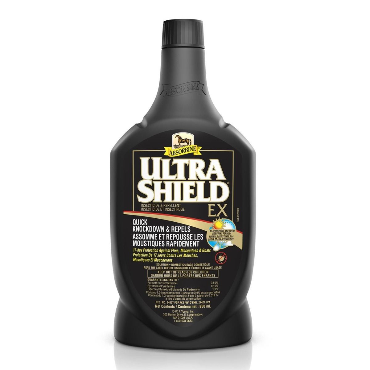 Faites l'expérience de la protection la plus avancée contre les insectes avec le spray anti-mouches UltraShield® EX d'Absorbine®. Ce puissant allié, connu comme Le Spray Anti-Mouches dans la Bouteille Noire™, est la solution de choix pour des propriétaires de chevaux exigeants qui recherchent confort et protection maximale pour leurs animaux. UltraShield® EX est spécialement conçu pour offrir une barrière résistante aux conditions météorologiques jusqu'à 17 jours, éliminant et repoussant plus de 70 espèces d'insectes nuisibles, y compris les mouches, moustiques, tiques et moucherons.
