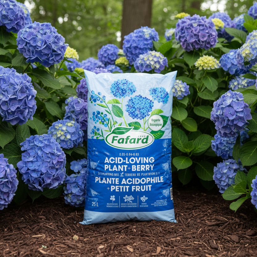 Spécialement conçu pour les plantes qui préfèrent un sol acide telles que les hydrangées bleues, les azalées, les rhododendrons, les bruyères, les lauriers des montagnes, ainsi que de nombreux arbres à feuillage persistant et petits fruits.
